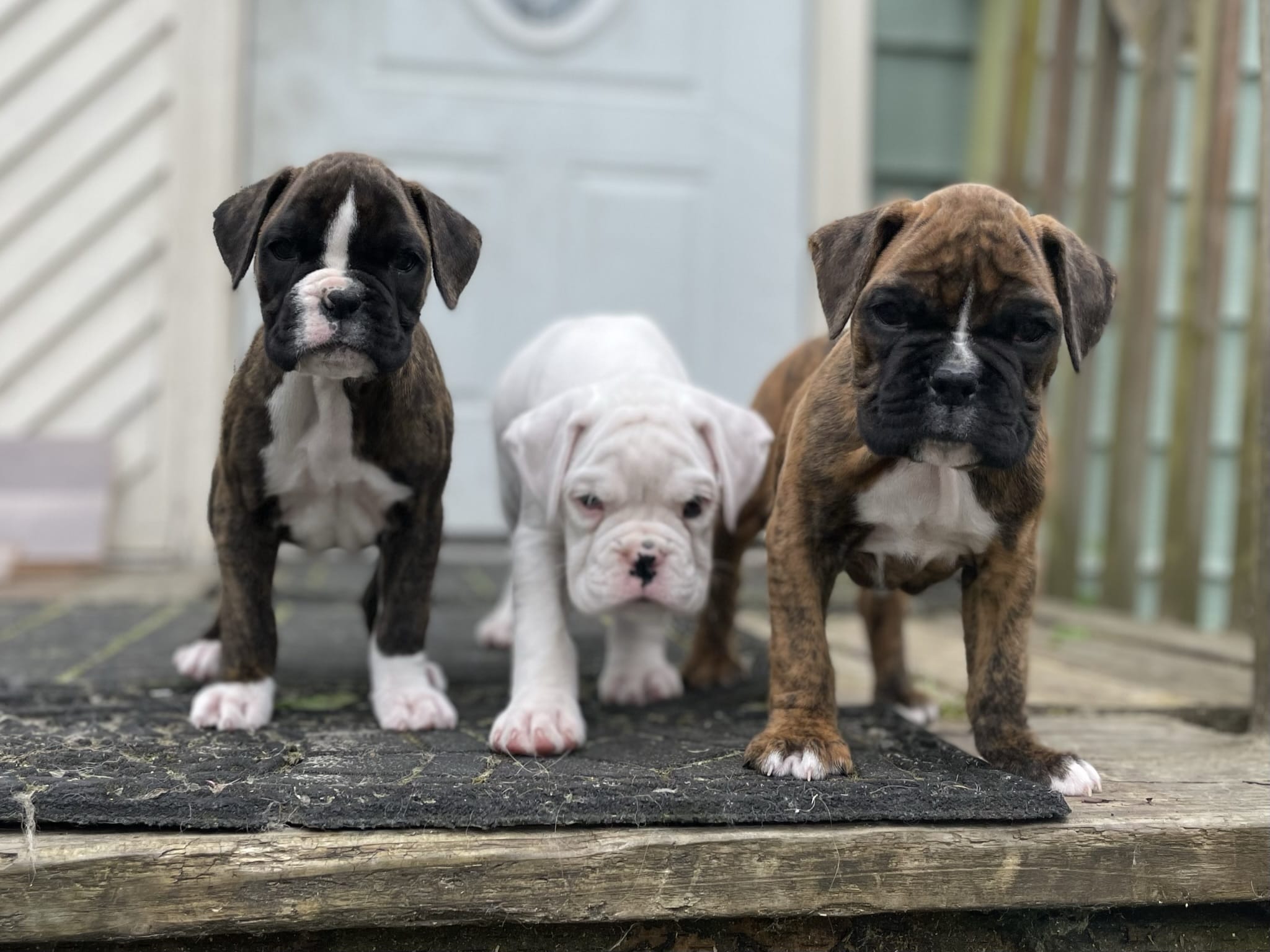 Two Brindle, One White